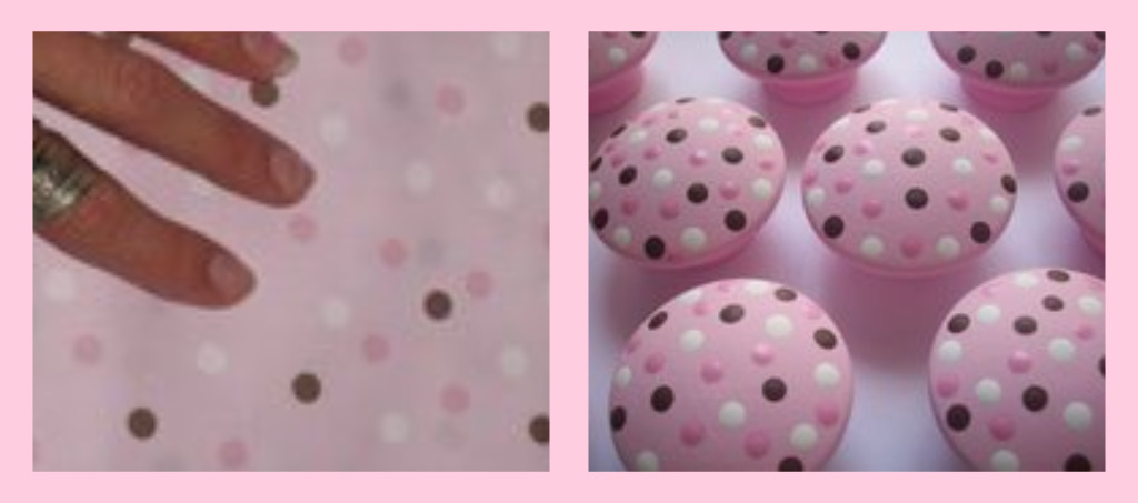I just refurbished an old dresser that we inherited from Chad’s grandmother when she passed away last year. It holds sentimental value for obvious reasons, but the dark stained wood was just not our color. I stripped it down, painted it white and then roughed it up for that “unfinished antique” look. It turned out great, but needed a touch of pink to incorporate it into the girls new bedroom. I sent Leila’s Loft a picture of the bedspread I’d gotten on clearance and Leila’s Loft worked their magic! A couple weeks later, I received matching knobs identical to the color scheme Id requested.