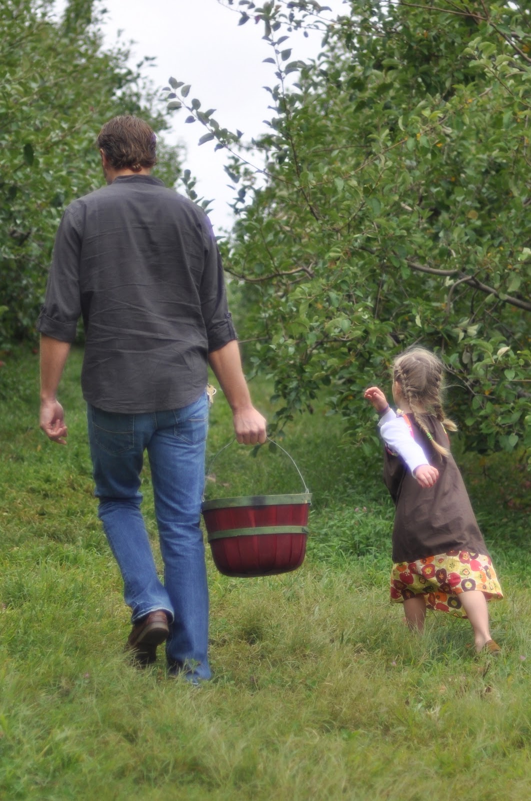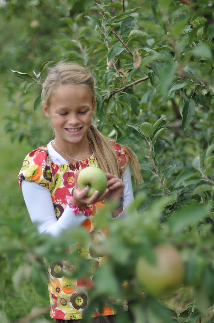 We strolled the rows of Jonathan, Mutsu, Golden Delicious and Granny Smith filling our baskets. Baskets in hand. Baby in sling. Camera shutter snapping away.