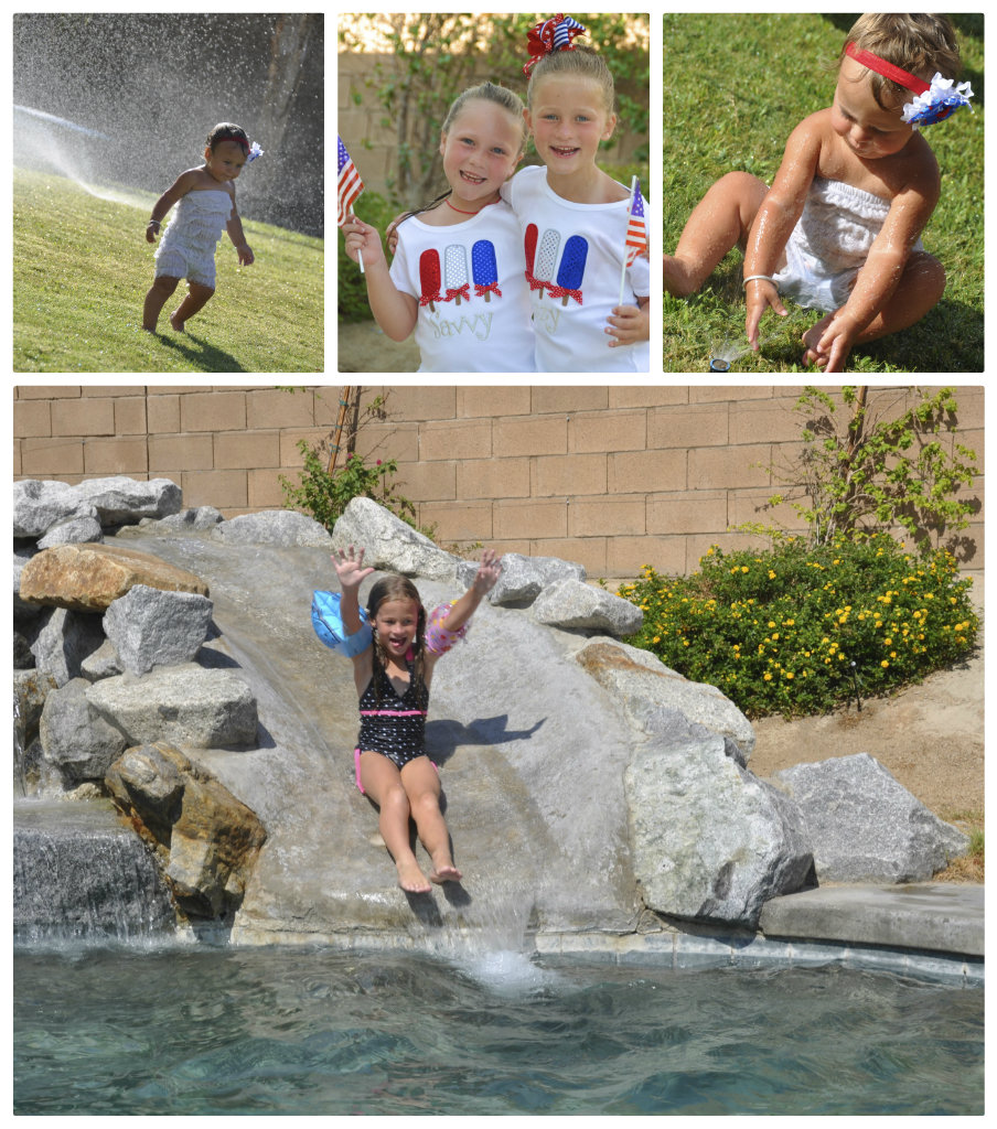 The blogging hiatus was due to 3 weeks on the road visiting family in California, Atlanta and Athens. C’s family reunion took us to Palm Springs CA where we blistered in the sweltering 115 degree desert heat. We celebrated the 4th of July trying to keep cool in the pools at the resort and playing in the sprinklers.