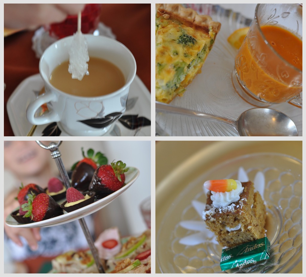 Scones with Devonshire cream and lemon curd were starters followed by a three course ladies lunch complete with quiche, tomato basil soup, finger sandwiches, tea cakes and chocolate covered strawberries.