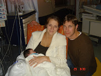 Friday night, respiratory difficulty lead us to have her checked out in the ER. Initial admission indicated that she had lost a pound and her oxygen was way down. At one point, her body temperature measured 70 degrees (normal is 98.6) The ER kicked into a frenzied state and called in a team of 12 people who immediately pulled around a tiny stretcher and began working on our baby. We watched her symptoms escalate and Evie turned completely white as they worked for two hours poking, prodding, running x-rays, doing a spinal tap and drawing blood, looking for Group B Strep or Meningitis. It was apparent that they didn’t think she was going to make it. We watched and cried as our daughters precious life almost slip away as they tried to incubate her. The defining moment was when by God’s grace (after many unsuccessful attempts) they finally got an IV in her tiny veins.