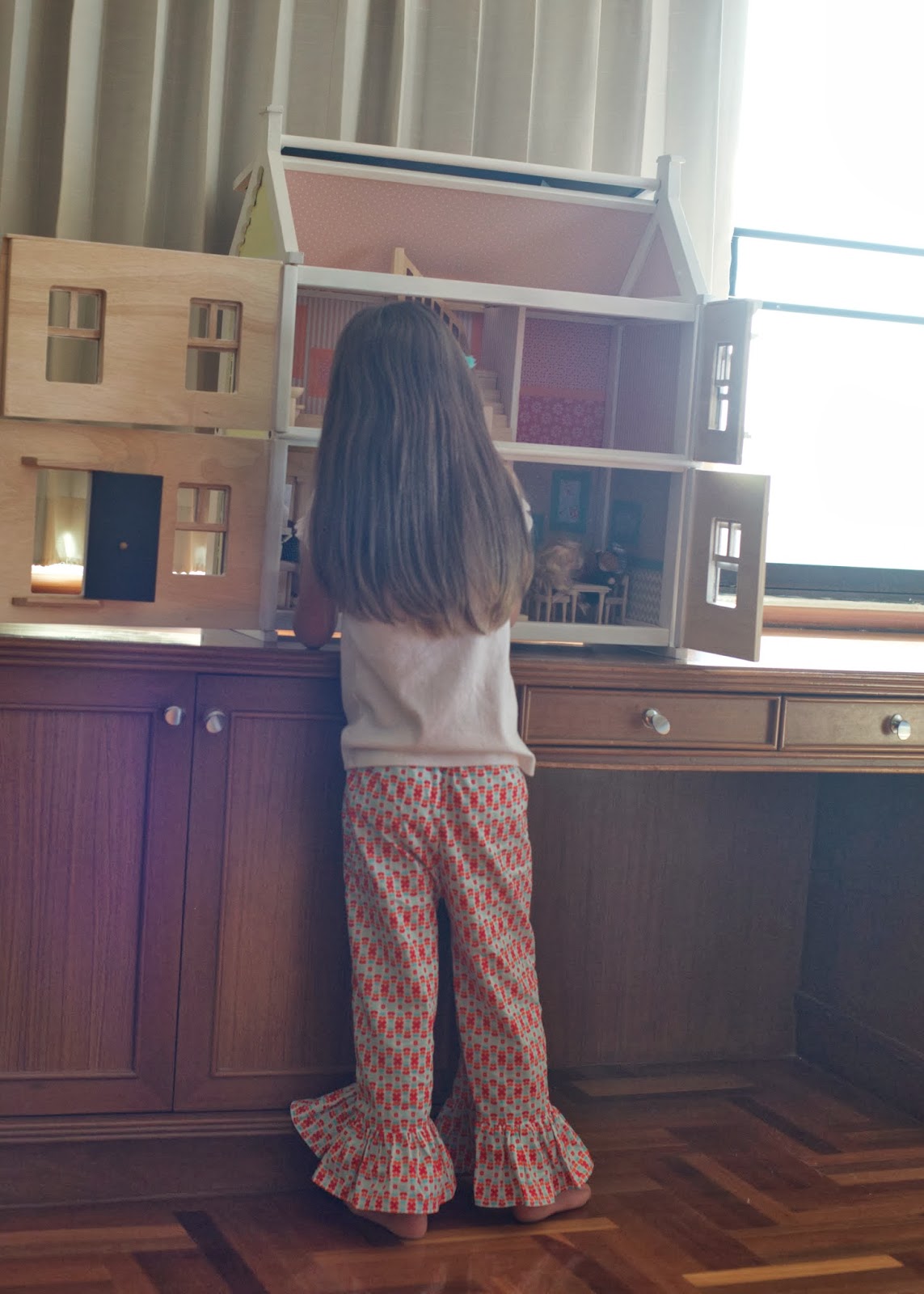 Being that she got both her daddys organizational OCD 🙂 and her mommas knack for decorating, she approaches dollhouse play a bit different from your average 6 year old. Instead of make-believe interaction with the tiny dolls, she is interested only in organizing rooms and rearranging furniture….and not too pleased when Gigi takes to dollhouse play in a more traditional manner.