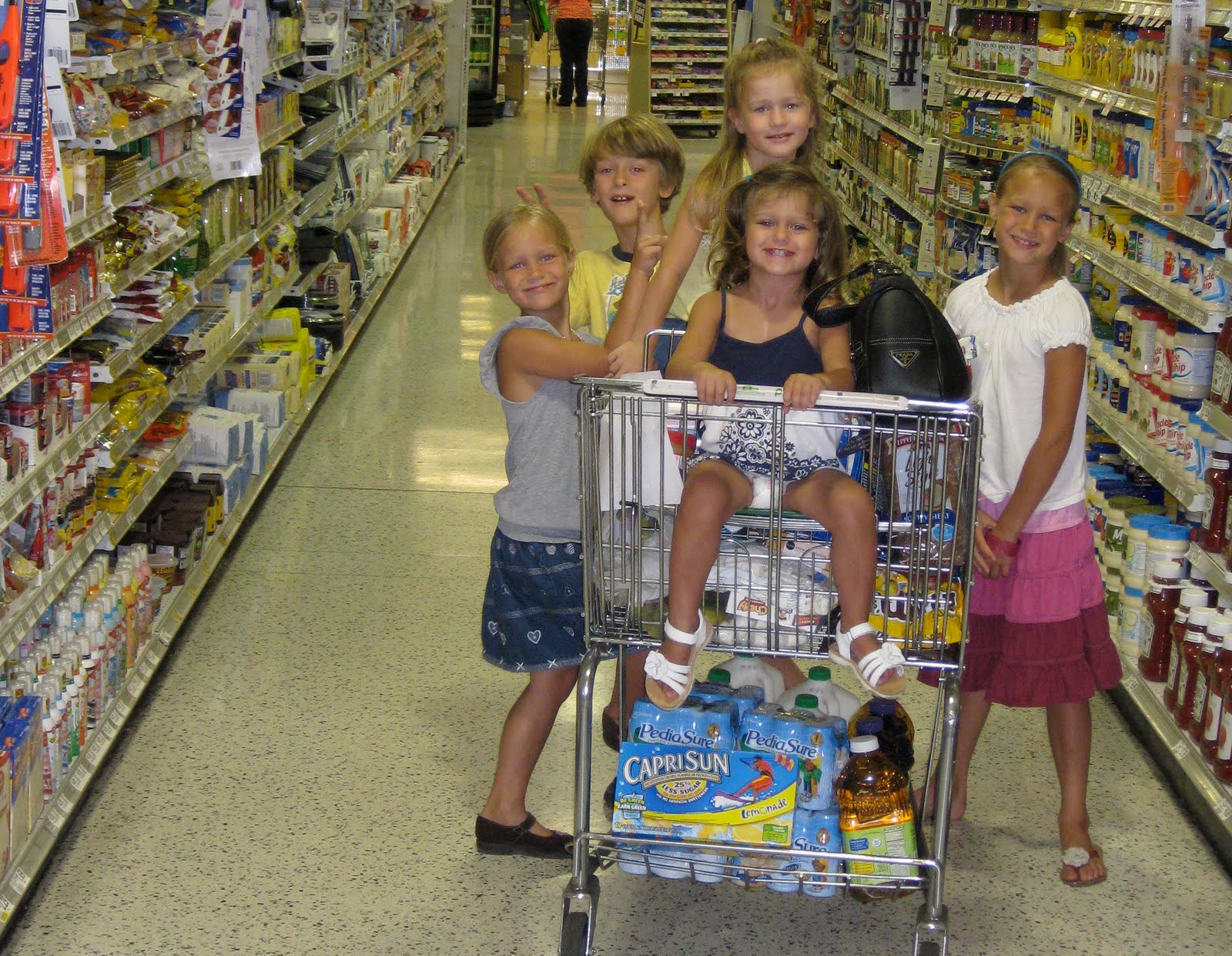 Out of necessity, all five accompanied me through Publix yesterday. My kids were sitting angelically in the cart and trailing behind in single file while I struggled to find my coupon match ups.