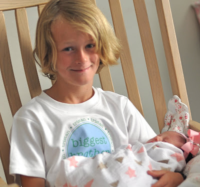 My precious sister stayed with the kiddos overnight when we went in for the induction and brought the proud big brother and sisters up to meet Gabriella yesterday. Oh….and cupcakes….and a banner….and gifts….and everyone showered and dressed in their matching Big/Sibling shirts. Have I mentioned, she’s amazing?!?!