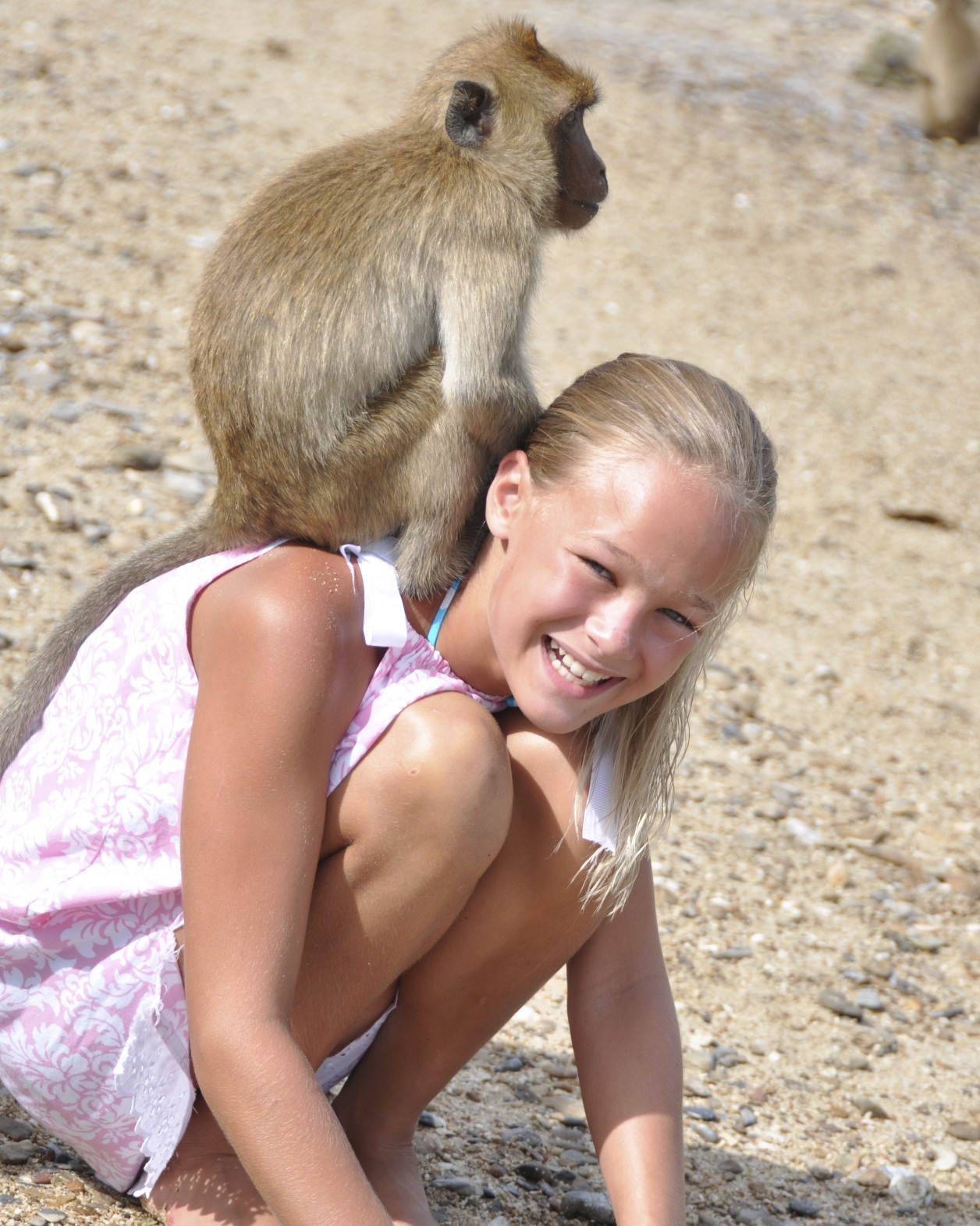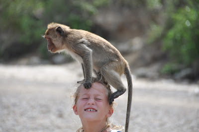 The kids thought monkeys perched on their shoulders was the coolest thing ever!