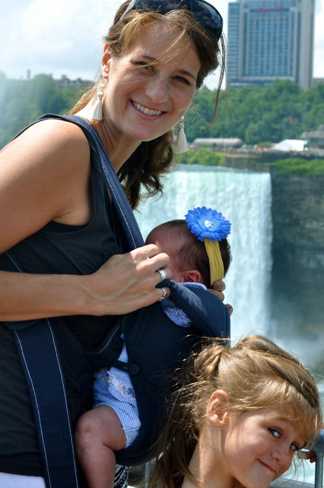 She slept through our stroll around the falls and will never remember it, but here’s Gigi-girl….a mere 2 1/2 months old, doing her northeastern US tour…in Mommy’s kangaroo pouch.