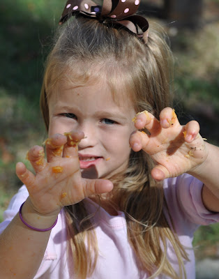 Tristan however was totally content to be up to his elbows in orange pulp!