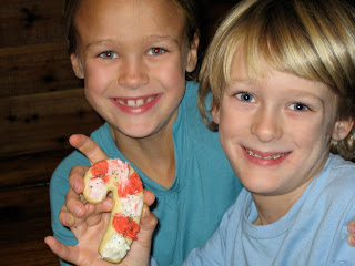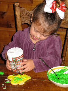 Our project yesterday…Cookie decorating with 5 little ones is a recipe for a delightful disaster. Sugar sprinkles everywhere and half a dozen kids on a sugar high.