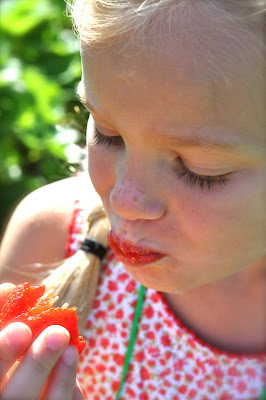 They should have weighed Evie in and out. Pretty sure they would have charged me for several more pounds of strawberries. She was so cute running up and down the rows. She kept coming up to me with a half eaten strawberry and juice dripping down her arm to her elbow saying, “try this one mommy. It really yummy”