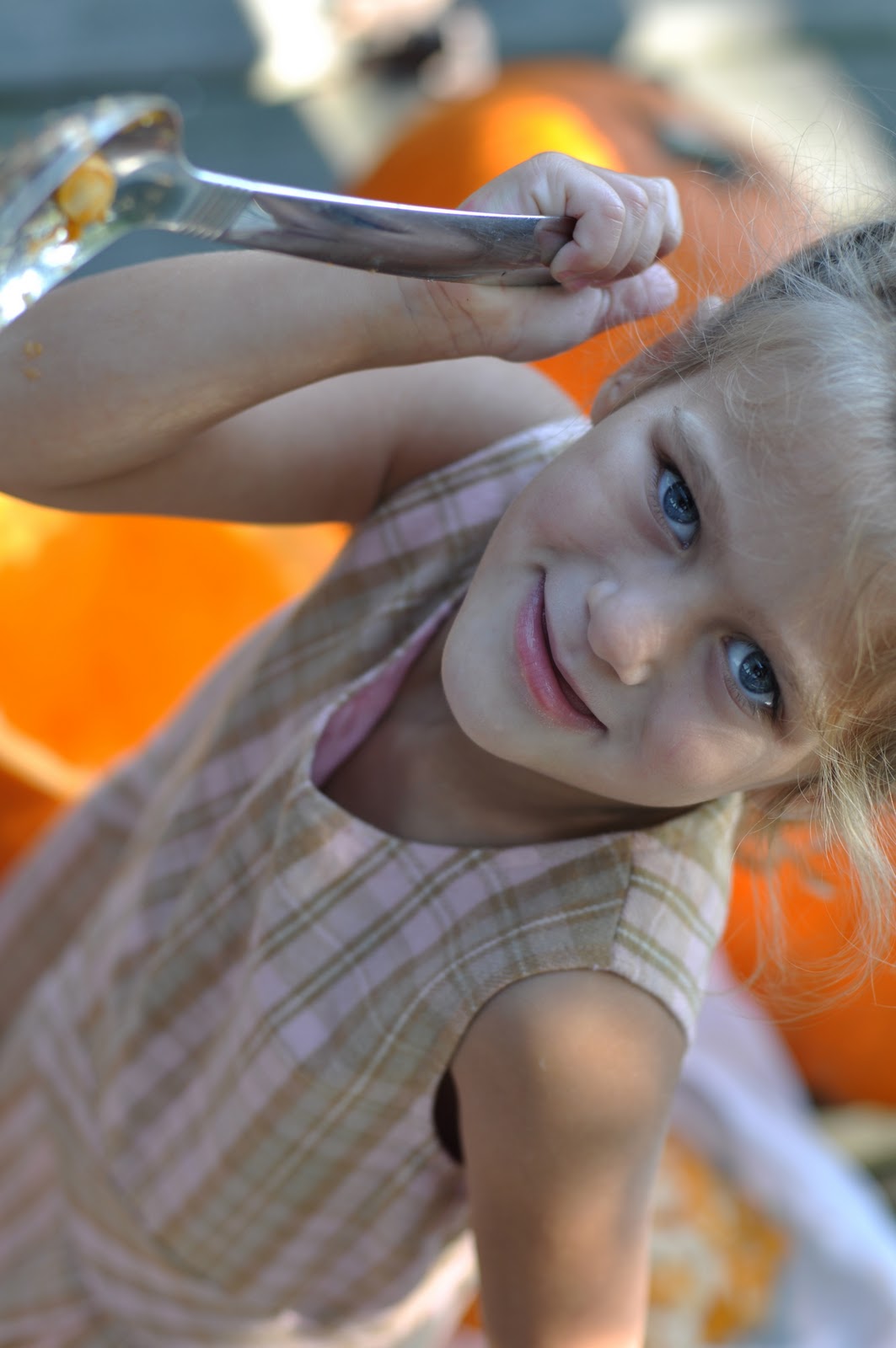 Evie and I spent an unseasonably warm morning on the porch carving a pumpkin today. This girly-girl sure isn’t afraid to get those hands dirty.