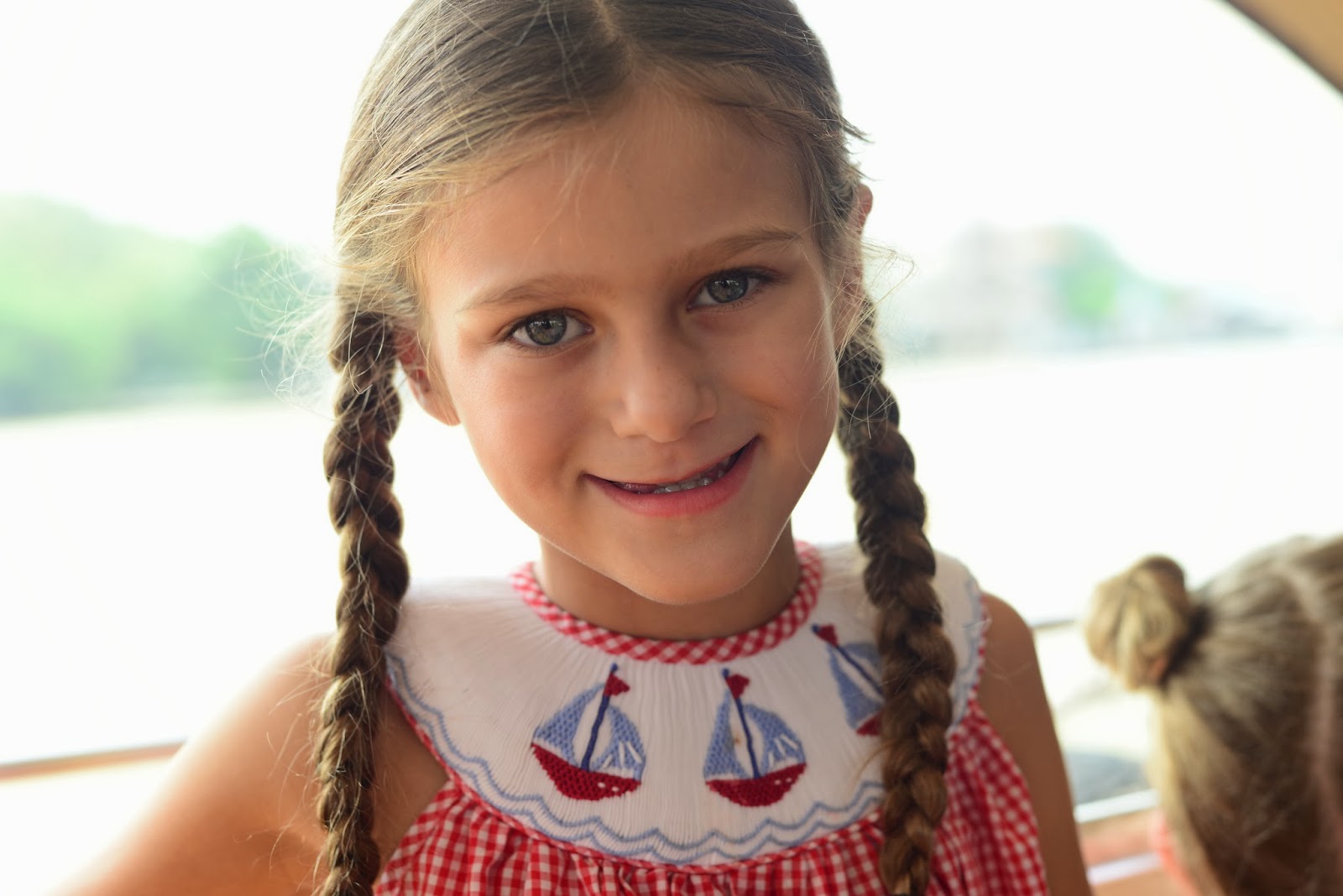| Gigi hating the heat, hating her hair bow, and hating mommys camera on the way home! |